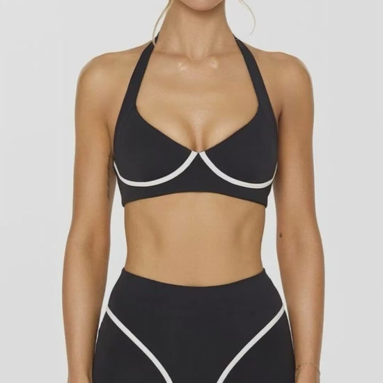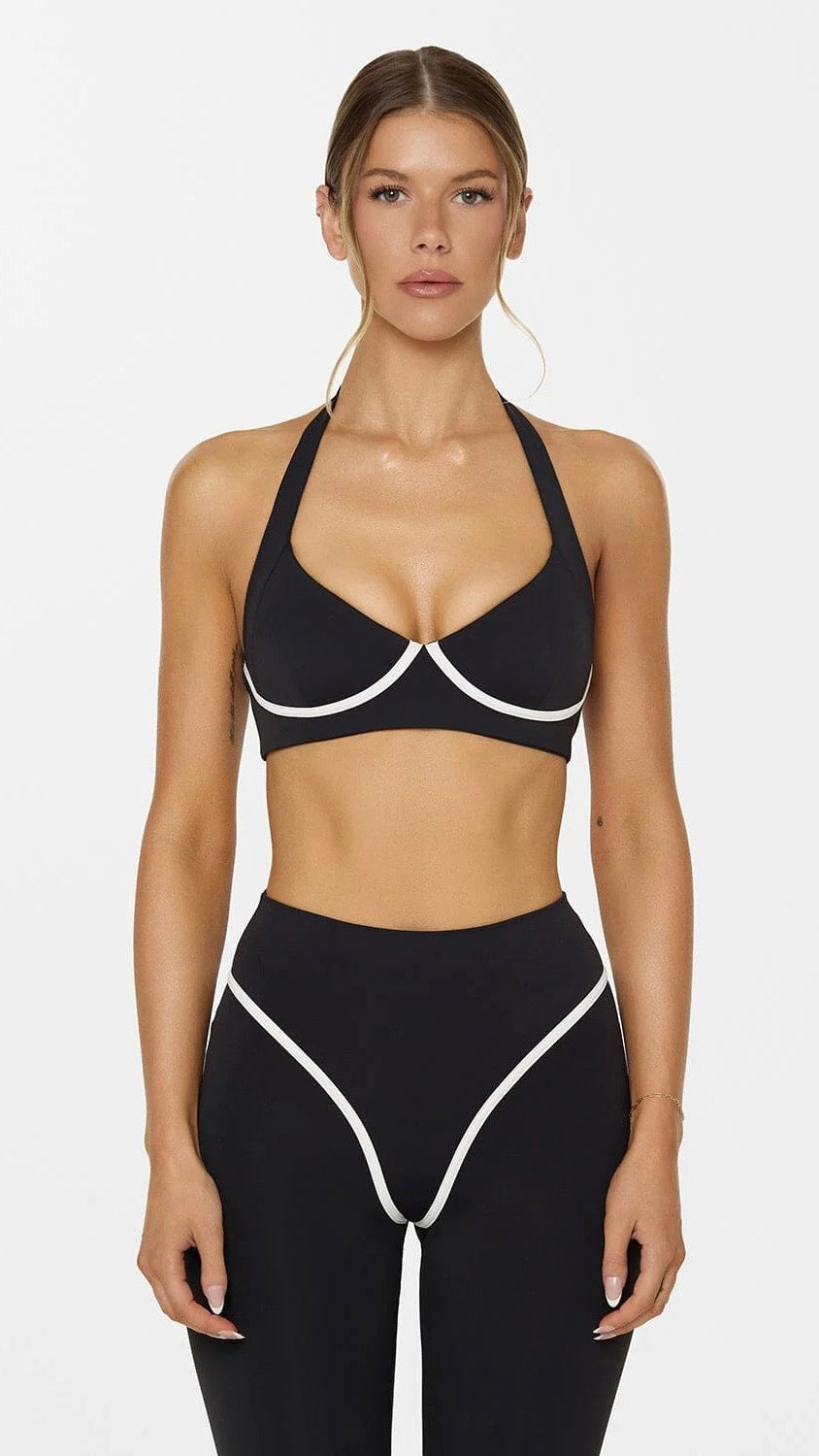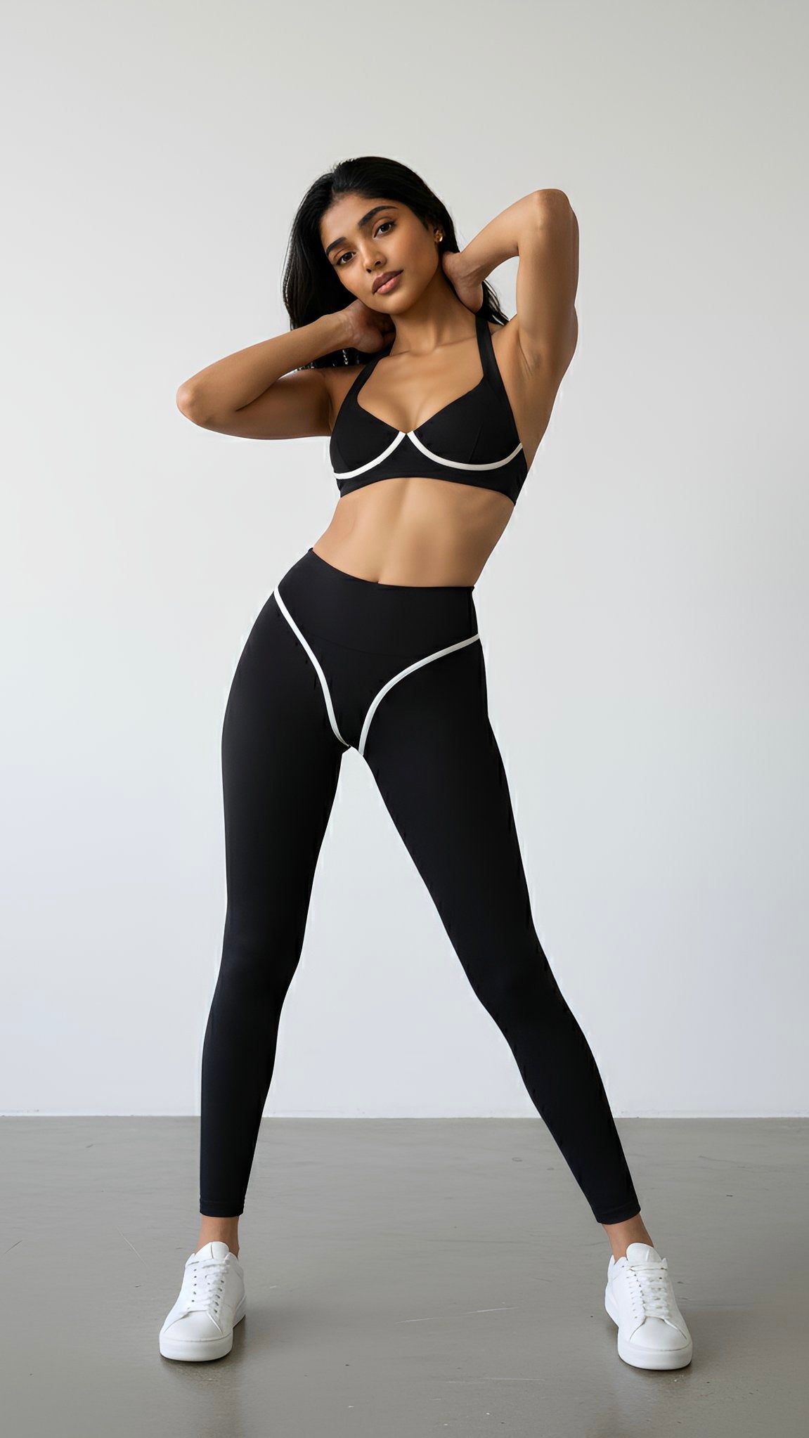 טופ ספורט אלגנטי – שחור עם פסי קונטור לבנים