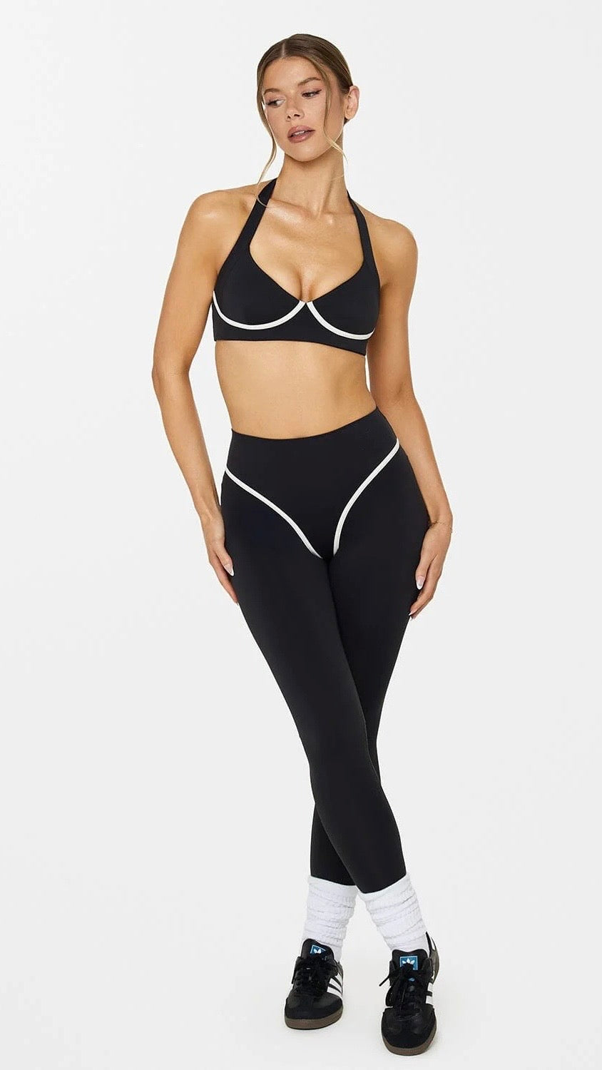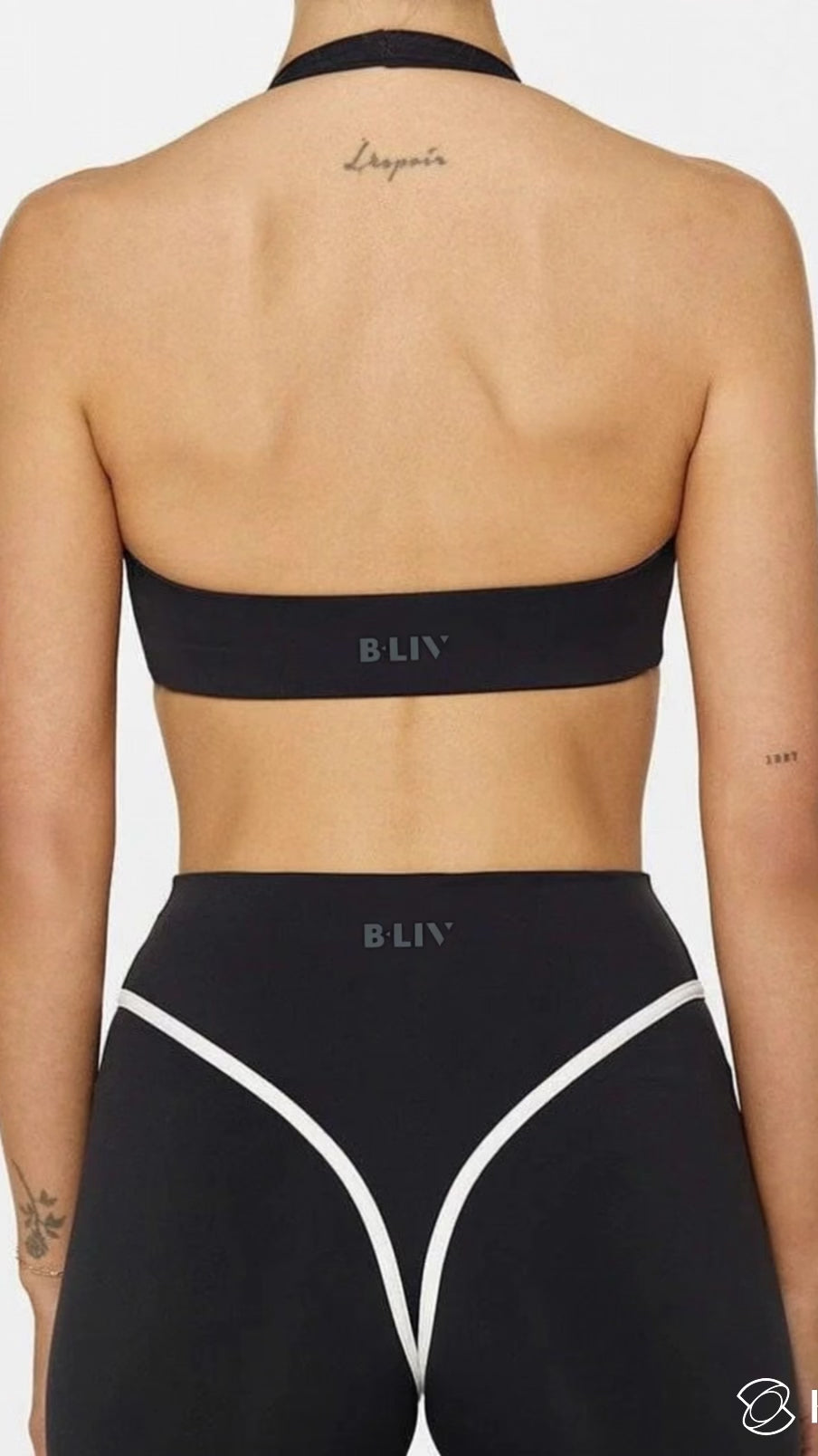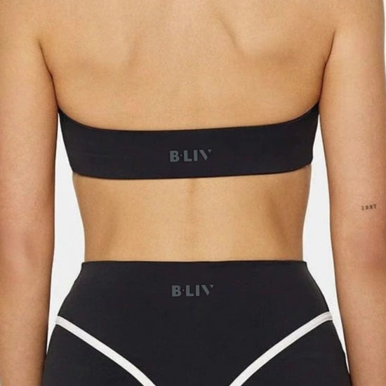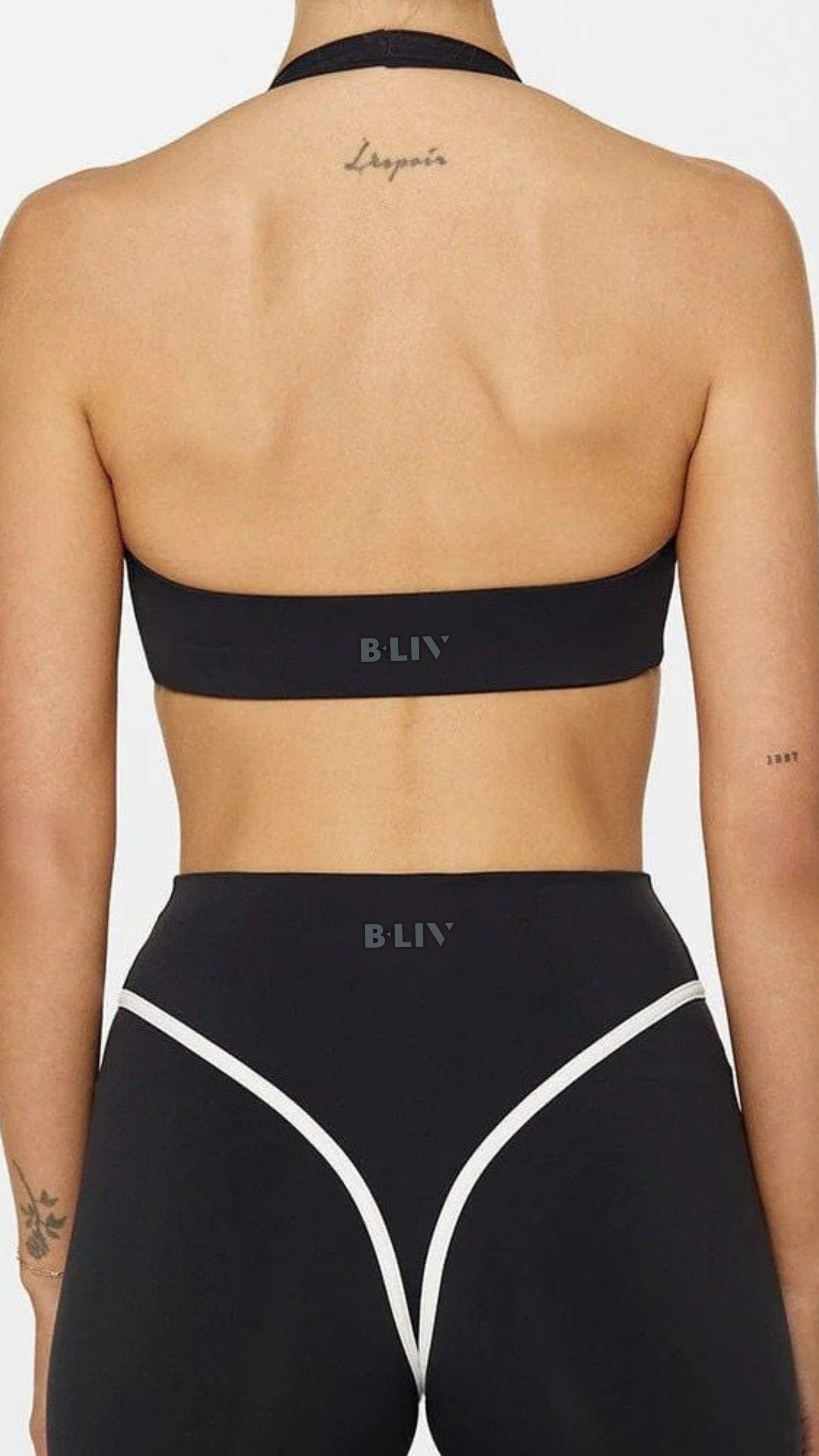 טופ ספורט אלגנטי – שחור עם פסי קונטור לבנים